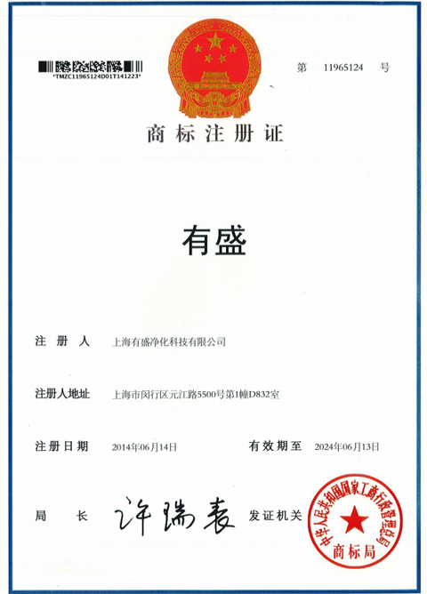 上海有盛凈化商標(biāo)注冊證