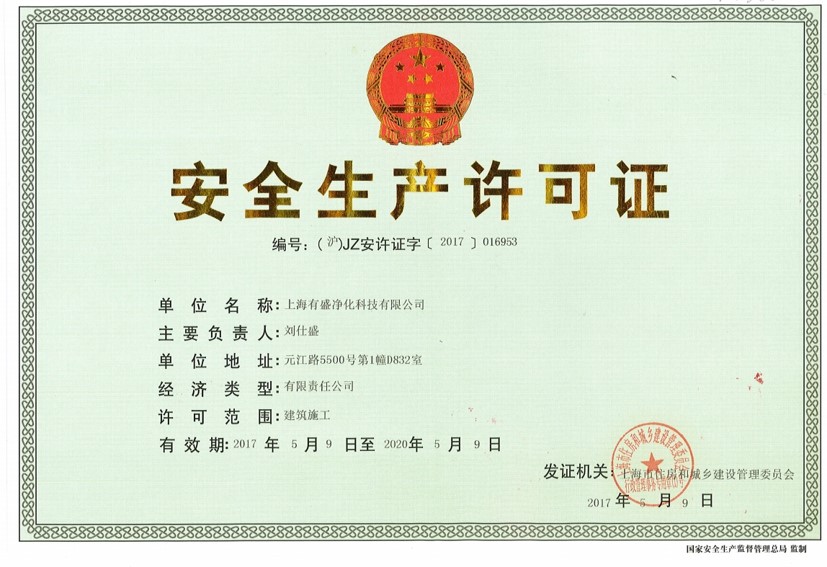 上海有盛凈化安全生產(chǎn)許可證