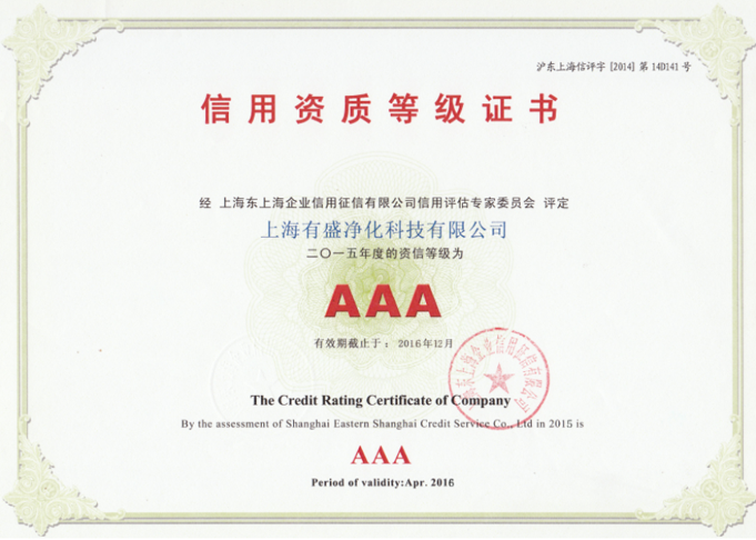 上海有盛凈化信用資質(zhì)等級證書